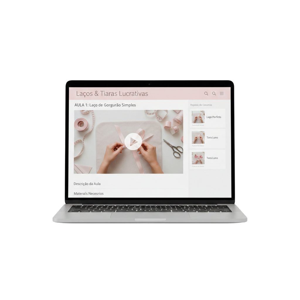 Neste bônus, você acompanha a montagem dos laços e tiaras em vídeo, vendo cada detalhe na prática.
